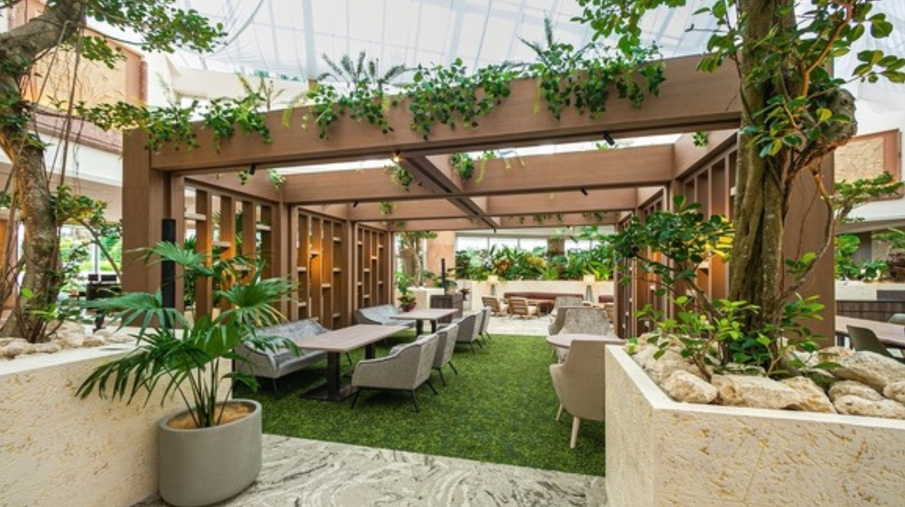 国際通りの喧騒を抜けた先に広がる、リゾート感あふれるホテル。